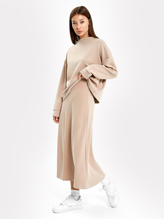 Новинка коллаборации MF и Ляйсан Утяшевой! Шикарная однотонная женская юбка из премиального полотна. Материал приятен на ощупь, имитирует нежность и блеск шелка, дарит прохладу в жару и согревает в холод, универсален как для лета, так для зимы и демисезона. Хорошо пропускает воздух и впитывает влагу, дарит ощущения свежести и чистоты. Модель красиво драпируется, мягко облегает силуэт, не стесняет движений и практически не мнётся. Эта юбка миди — элегантный и стильный вариант одежды для тех, кто ценит комфорт и женственность. Модель имеет форму А-силуэта, что придает ей изящество и легкость, она плавно расширяется к низу. Такой фасон украшает и смотрится очень гармонично.  Длина юбки ниже колена, удачно подчеркивает силуэт. Пояс цельнокроеный с жаккардовой эластичной тесьмой внутри гарантирует комфортную посадку. Дополнить можно оригинальным жакетом, рубашкой, футболкой или джемпером из этой же капсулы в идентичном оттенке для создания великолепного образа. Рекомендуем!