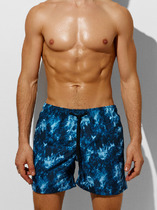 Мужские свободные шорты средней длины с боковыми карманами и поясом на резинке с кулиской.