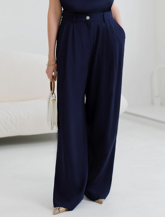 Совместные покупки Магнитогорск Женская одежда Брюки — 22.03 Vilatte Брюки палаццо с защипами из плотного лиоцелла D24.313 темно-синий