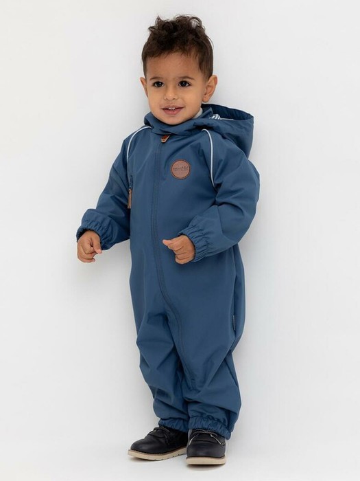 Ветровочный комбинезон ясельный из мембранной ткани с дополнительной тефлоновой обработкой. Данный вид обработки предохраняет изделие от загрязнения и лучше отводит влагу. Подклад из 100% хлопка. У изделия удлиненная молния для легкого одевания с защитой подбородка. Утяжка на капюшоне с потайными стопперами. По низу рукавов и брючин, а также на спинке изделия эластичная резинка для лучшего прилегания. Для фиксации комбинезона используются съемные силиконовые штрипки. В размерах 68-74 и 74-80 функциональные отвороты на рукавах и брючинах. Во всех изделиях верхнего ассортимента для безопасности ребенка предусмотрены светоотражающие элементы.
