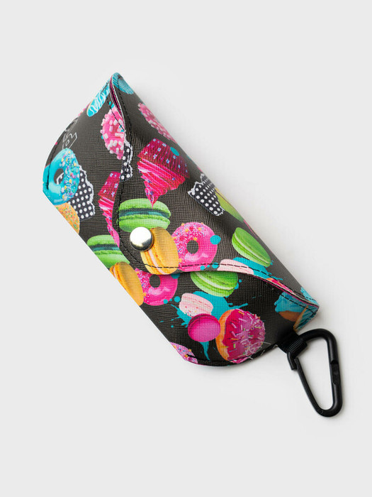 Чехол для солнцезащитных очков. Материал верха принтованная искуственная кожа. Яркий принт пончики подходит под коллекцию. Чехол закрывается на кнопку. Внутри мягкая подкладка из микрофибры. Чехол имеет карабин, с помощью которого чехол можно прикрепить на сумку или рюкзак. В подарок идет салфетка из микрофибры для протирки очков. Параметры чехла: 16*7*4,5 см