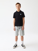 Брюки зауженные из трикотажа джерси для мальчика. Пояс с еврорезинкой сзади. На передней части брюк боковые карманы, горизонтальные защипы и застёжка - гульфик на молнии. На правой задней половинке брюк - карман с узкой листочкой. Отличный вариант на каждый день.