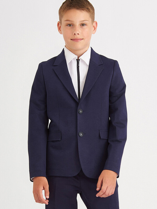 Трикотажный пиджак из смесовой вискозы полуприлегающего силуэта с английским воротником и втачным рукавом. Имитация боковых карманов с клапаном. Застегивается на 2 пуговицы.