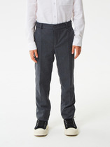 Классические брюки для мальчика из износостойкой и устойчивой к смятию костюмной поливискозы немного зауженные к низу. На передней части брюк боковые карманы, заглаженные стрелки и застёжка - гульфик на молнии. На правой задней половинке брюк - карман с клапаном, на втачном поясе с регулировкой и шлёвками. Отличный вариант на каждый день.