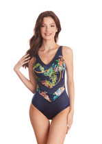 Акция по 30.01 Milavitsa КУПАЛЬНИК ЖЕН. Тропический рай 400160 синий набивной