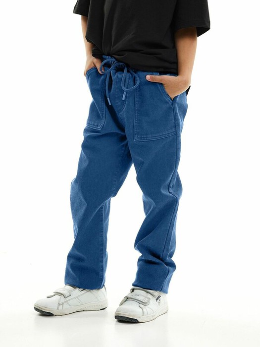 Джинсы синие свободного прямого кроя из натурального хлопка с добавлением эластана для максимального комфорта. Данная модель отлично будет смотреться как на девочках, так и мальчиках. Подойдет для образов в школу, по любому поводу и на любой сезон.Особенности:Застежка на завязки спередиЭластичный поясДва накладных кармана спередиПояс с резинкой для регулировки обьема