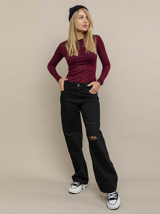 24.03 Batik Джинсы трубы с рваными коленями (010_ДЛ24) 010_ДЛ24 Черный