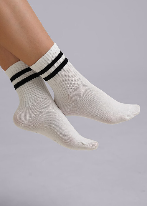 подростковые носки удлиненные с полосками с ластичным паголенком с кеттельным швом