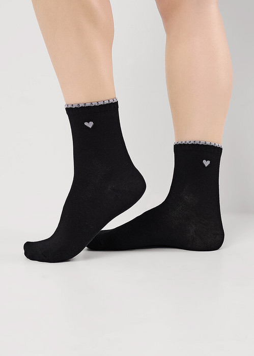 Носки для девочки с резинкой пикот, выделенным бортиком и рисункосм сердечко на паголенке