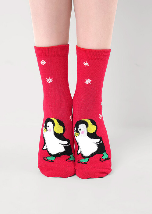 Носки детские с рисунком пингвина, грудка пингвина выполнена из пряди травка