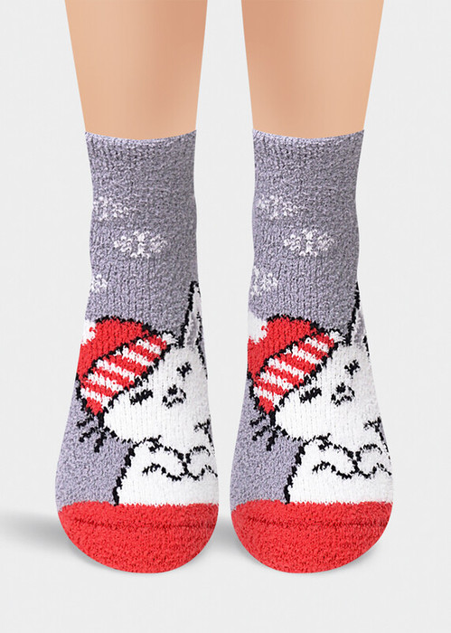 детские новогодние носки из мягкой ""травки"" с рисунком зайца