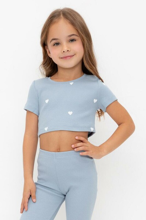 24.03 Crockid фуфайка (футболка)-топ для дев КР 302727-1/пыльно-синий,сердечки к