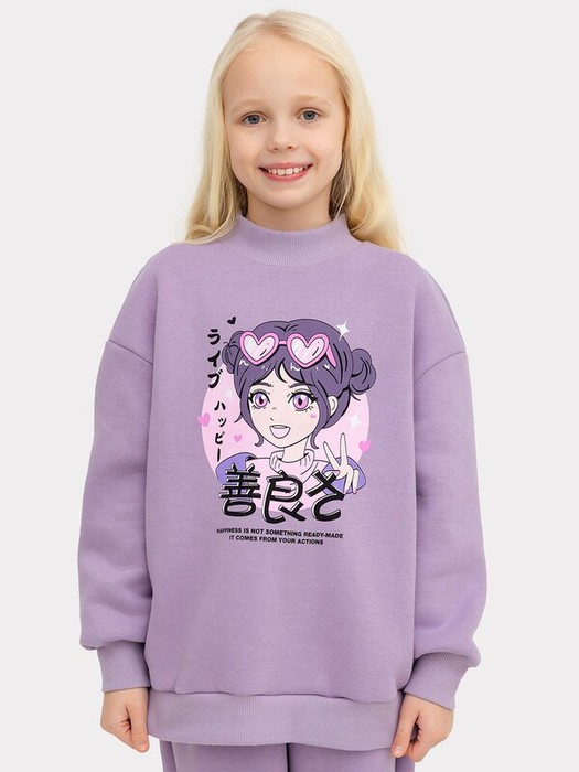 Утепленный свитшот прямого силуэта для девочек. Выполнен из трикотажного футера с теплым и нежным подчесом. Длинные рукава завершаются широкими манжетами. Вырез круглый, не глубокий. Спущенная пройма дарит свободу движений. Рекомендуем для прохладной погоды!
