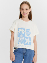 Модная футболка для девочек, выполненная из хлопковой трикотажной кулирки. Силуэт прямой. Перед и спинка без швов и рельефов. Рукава короткие, вырез классический – круглый, не глубокий. Стильная футболка с ярким дизайном!