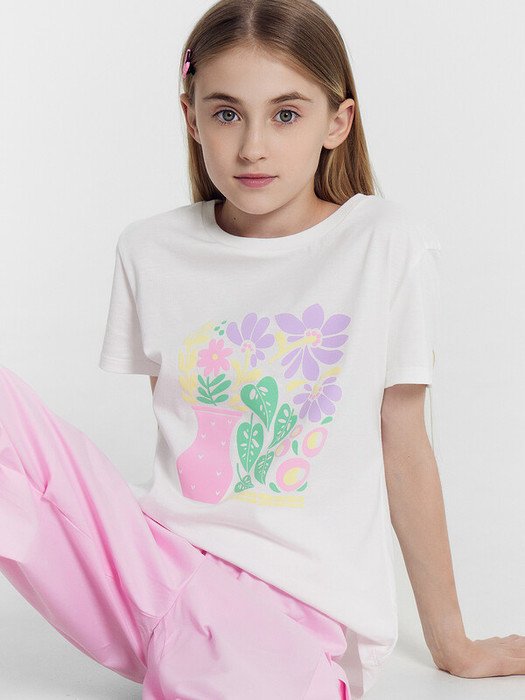 Очаровательная футболка для девочек. Изготовлена из трикотажного полотна кулирного переплетения. Силуэт прямой, низ фигурной формы. Длина до середины бедра. Рукава короткие. Горловина круглой формы. Отличный выбор!