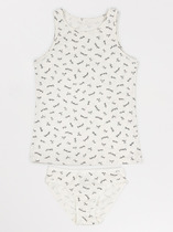 Трусики выполнены из того же дышащего материала, что и топ. Мягкая обработка швов предотвращает натирание, а эластичная тесьма по верхнему краю надежно фиксирует изделие. Комплект нижнего белья для девочки подходит для повседневной носки, занятий спортом или отдыха.