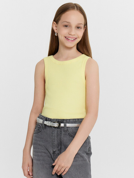 Топ для девочек из рибаны, облегающего силуэта, длиной ниже уровня талии. Перед и спинка цельнокроеные. Горловина круглая. Горловина и проймы окантованы широкой бейкой из основного полотна. Низ изделия обработан швом в подгибку.