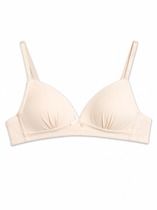 Бюстье из трикотажной кулирки. Горловина округлой формы. Спинка фигурная, как в спортивном топе. Все срезы окантованы бейкой из основного полотна. По нижнему срезу настрочена жаккардовая эластичная тесьма.