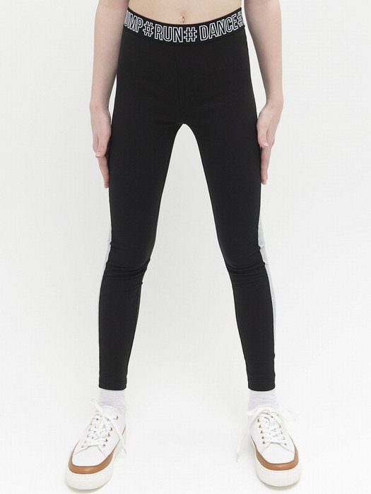 Трикотажные лосины для девочек со средней посадкой. Леггинсы сшиты из ткани с высоким содержанием хлопка, которая приятна на ощупь и комфортна в ношении. Благодаря добавлению эластана леггинсы идеально облегают ноги, хорошо тянутся и не сковывают движение. Вставки из ткани контрастного цвета делают ноги еще стройнее. Пояс из широкого тканого эластика с текстом "танцуй, прыгай, бегай" не сдавливает живот, не закатывается и не врезается. Идеальны для занятий спортом в комбинации с кроп-топом, на улицу и для дома с удлиненными футболками и худи.