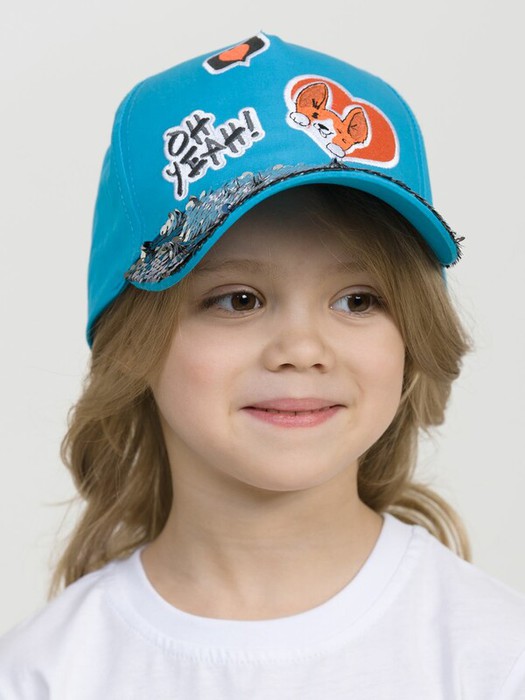 Классическая хлопковая бейсболка яркой расцветки для девочек. Загнутый козырек прекрасно держит форму. Украшение верхней части козырька двухсторонними переворачивающимися пайетками. На передней части декоративные нашивки с позитивными героями и текстами. Регулируемая застежка на липучке. Хорошо защищает от солнца, не жарко. Не выгорает на солнце и не портится из-за осадков.