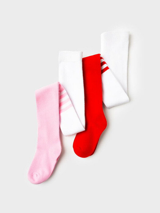 Детские колготки для девочки. Набор из 2 пар. Универсальные модели с розовым и красным дизайном. Колготки тянутся, хорошо сидят за счёт эластичного пояса, имеют удобную посадку и усиленный мысок и пятку. Материал — мягкий хлопковый трикотаж.