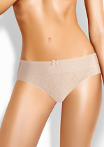 Трусы бразилиана из хлопкового полотна с эластаном. Сбоку вставки из узкой эластичной тесьмой. По ножке край окантован резинкой, а по талии жаккардовая резинка.