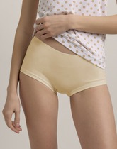 Трусы слипы женские из эластичного хлопкового полотна. Обработка краев по талии - широкая резинка в рубчик, по ноге - полуокантовка. Спереди принт.
