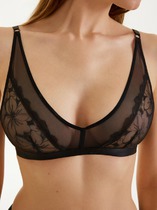 Бюстгальтер с мягкими чашками, без каркасов. Чашки выполнены из хлопка, на подкладке из хлопка. Чашки с вытачками. Чашки обтачаны подкладкой по линии декольте и пойме, внутри жилка. Ластовица выполнена из хлопка на подкладке из хлопка с монокапроном внутри. Отрезные бочки из хлопка на подкладке из хлопка. Верхний срез бочка обработан жесткой тесьмой, по размерам (внутренняя обработка, по лицевой стороне строчки нет). Нижний срез стана обработан обтачкой из хлопка с внутренней резиной. Бретель с регулировкой по размерам. Застежка двойная.