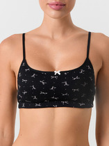 Застежка на спинке и эластичные тесьмы по краям гарантируют удобную посадку без давления. Состав с преобладанием хлопка позволяет коже дышать, а полиэстер и полиамид сохраняют форму изделия. Модель особенно удобна для ежедневной носки — она не оставляет следов на коже и обеспечивает равномерную поддержку груди без ощущения стесненности.
