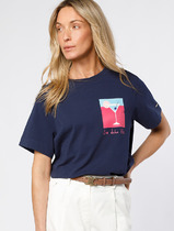 27.03 Vilatte Футболка из премиального хлопка с принтом фольгой D49.098 т.синий