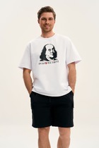 Базовая однотонная футболка стандартного объема с V вырезом горловины, втачным рукавом из хлопкового полотна с добавлением эластана. Является неотъемлемой частью мужского гардероба.