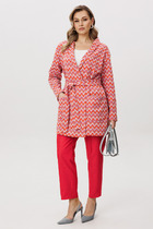 Комплект из текстильного полотна штапель-креп. Блузка свободного кроя. Втачной рукав. Отложной воротник спереди планка на пуговицах,накладной карман.Боковые разрезы.Брюки широкие. По талии пояс на резинке,с завязками. Боковые карманы в отрезном бочке.