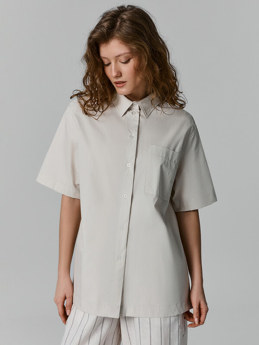 Горловина круглой формы с рубашечным воротником. Плечо спущено, пройма углублена. Рукав втачной, короткий. Низ рубашки прямой.