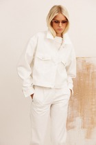 Жакет женский, выполнены из трикотажного полотна велюр с пайетками. Жакет прямой, свободный, укороченный. Горловина V-образной формы. Рукава втачные, длиной до локтя. Жакет на подкладке из сатина. По переду завязки из репсовой ленты на бант.