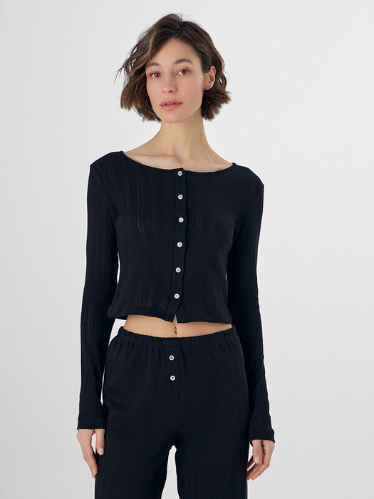 Укороченный домашний жакет — это уютная и женственная вещь для расслабленных дней. Он выполнен из мягкой хлопковой рибаны, которая обеспечивает комфорт, хорошо тянется и приятно облегает фигуру.