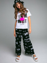 Брюки прямые свободные, посадка средняя. Пояс отрезной, с эластичной тесьмой внутри (внутренняя 50мм 50RV). С внешней стороны пробиты петли и вставлен шнур 10PX-2. В боковых швах обработаны карманы. По бокам  лампасы из кулирки.