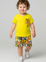 Комплект из двух предметов. Жакет прямого силуэта с воротником. По переду обработана застежка на пуговицы d=10mm и петли. Рукава короткие, втачные, слегка спущены. Нижние срезы изделия и рукавов обработаны швом в подгибку. Брюки прямого силуэта. Посадка средняя. Пояс цельнокроеный с эластичной тесьмой внутри. На поясе пробиты петли, заправлен шнур из основного полотна. По переду имитация гульфика, обработаны карманы с наклонным входом от боковых швов. Низ изделия с отворотами.
