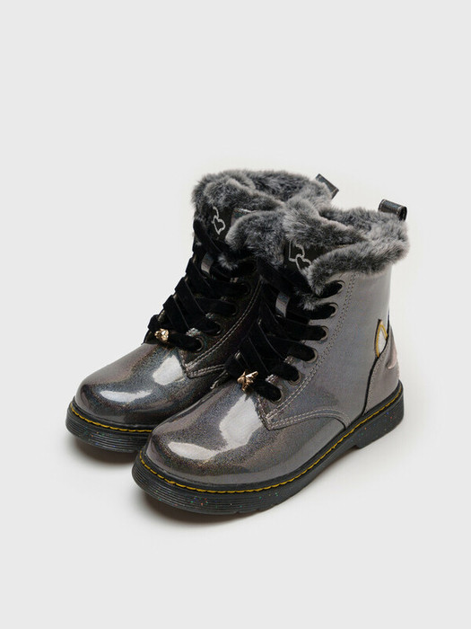 Ботинки детские демисезонные для девочки. Верх обуви выполнен из искусственной лаковой кожи с глитерным эффектом. Отделка искусственным мехом. Сзади вышит милый единорог                                                                                                                                                                                                                                                                                                                                                                                                                                                                                                                                       • Подкладка и съемная стелька выполнены из войлока с высоким содержанием шерсти 80%.                                                                                                                                                                                                                                                                                                                                                                                                                           • Для основания стельки используется современный дышащий антибактериальный материал HI-POLY, в состав материала входят частички угля,  который хорошо абсорбирует неприятный запах.                                                                                                                                                                                                                                                                                                                                                                                                                                                                                                                       • Формоустойчивый задник поддерживает стопу в правильном положении.                                                                                                                                                                                                                                                                                                                                                                                                • Эргономичная форма колодки обеспечивает правильное формирование стопы ребенка                                                                                                                                                                                                                                                                                                                                                                                                                                                                                                                           • Модель имеет бархатные шнурки, которые можно завязать красивым бантом, а пользоваться внутренней молнией для обувания                             