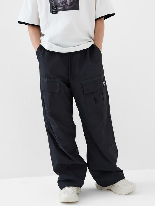 Брюки для мальчика подростка. Выполнены из плотной ткани с ветрозащитным и водоотталкивающим покрытием. Модель свободного прямого кроя со средней посадкой. Боковые карманы. На брючинах большие накладные карманы с клапанами, сзади — два кармана. Пояс на резинке с утягивающим шнурком. Внизу штанин предусмотрена регулировка объема с помощью эластичного шнура. На одном из боковых карманов — фирменный жаккардовый шеврон, а на задней штанине — вертикальный принт с мотивационной надписью. Внутри — мягкая подкладка из флиса и таффеты.