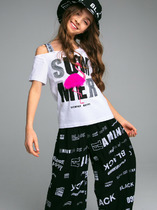 Детская футболка для девочки. Модель прямого кроя, выполнена из эластичного хлопкового трикотажа джерси. Спереди - яркий принт, паетки и декоративный бант. Горловина круглая. Вырезы на рукавах.