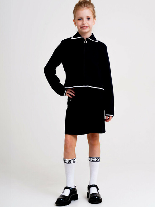 Укороченный синий школьный кардиган для девочки подростка. Кардиган прямого силуэта на молнии выполнен из вязаного трикотажа с содержанием вискозы. Кофта в школу выглядит стильно, благодаря лаконичному дизайну. Рубашка, футболка или поло + кардиган для школьницы составят красивый элегантный комплект для школы.
