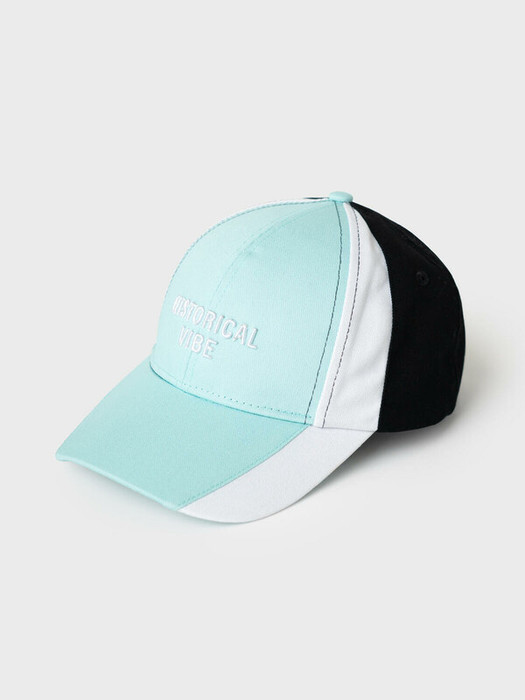 Бейсболка для девочки подростка, выполненная в спортивном стиле. Основа — из мягкого хлопкового текстиля нежно-бирюзового цвета, с контрастными частями. Впереди — объемная вышивка, сзади — черный логотип. Козырек изогнутый. Размер регулируется с помощью удобной застежки на липучке.