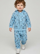 Детский спортивный костюм для мальчика. Комплект выполнен из хлопкового футера и состоит из толстовки на молнии и джогеров на резинке. Толстовка прямого кроя с капюшоном. Капюшон регулируется шнурками. Удобные карманы. Манжеты и пояс выполнены из эластичного трикотажа, благодаря чему изделие хорошо держит форму. Брюки джоггеры — комфортные, с эластичным поясом и шнуром для регулировки посадки. Низ штанин собран на резинку.
