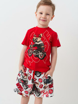 Костюм для мальчика подростка. Состоит из футболки и шорт. Выполнен из хлопкового трикотажа пике. Футболка оверсайз с воротником поло на молнии. Красочный принт. Шорты свободные, с эластичным поясом и шнурком для регулировки посадки. Удобные боковые карманы.