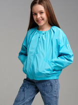 Укороченная ветровка для девочки подростка. Температурный режим от +20 до +10С. Ткань с ветрозащитным и водоотталкивающим покрытием. Внутри мягкая подкладка из трикотажа.  Спереди — два больших накладных кармана на кнопках. Манжеты на резинке. По низу утяжка на шнур. На спине и рукаве — светоотражающие элементы.