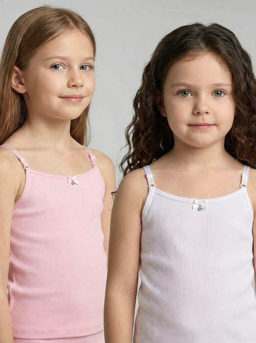 Набор детских маек для девочки. Комплект бельевых топов с регулируемыми эластичными бретелями. 2 модели в сете. Высокое содержание хлопка. Благодаря наличию эластана в составе ткани, изделие проще в уходе и держит форму.
