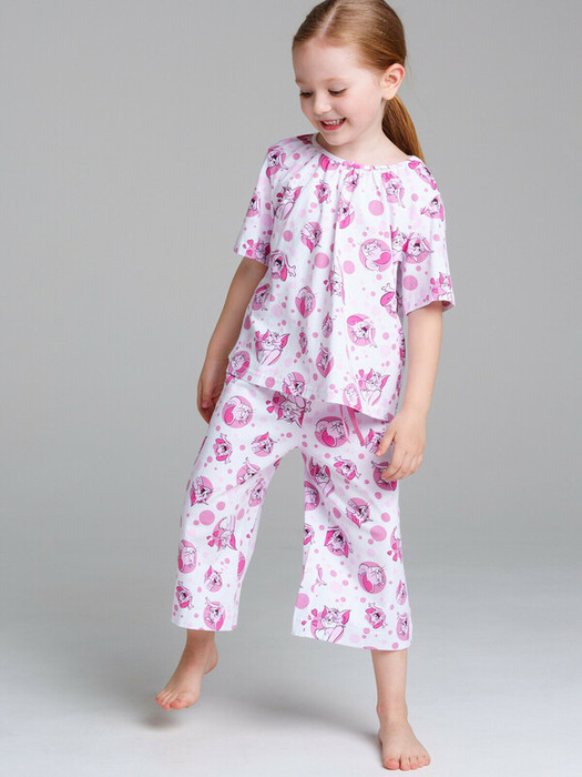 Пижама: футболка, брюки. Эластичный пояс с тесьмой позволяет легко надевать брюки и утягивать до комфортной посадки. Высокое содержание хлопка 93%. Благодаря наличию эластана в составе ткани, изделие проще в уходе и держит форму.