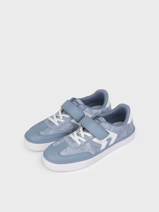 Трендовые кеды для девочки подростка. Кроссовки  выполнены из искусственной кожи с эффектом тиснения под джинсу. В носочной части обуви стоит текстильная подкладка c высоким содержанием хлопка 80%, которая обладает высокой гигроскопичностью. В пяточной части обуви текстильная подкладка обладает хорошей износостойкостью.  Эластичные шнурки и липучка создают удобство при обувании. Профилированная стелька из свиной кожи с анатомической формой подсводника обеспечивает правильную нагрузку на стопу. Формоустойчивый задник поддерживает стопу в правильном положении. Эргономичная форма колодки обеспечивает правильное формирование стопы ребенка. Двухсоставная подошва из ТПР не скользит и устойчива к истиранию.