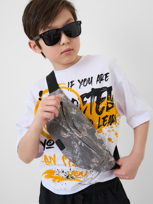 Трендовая сумка кросс-боди для мальчика-подростка. Регулируемый брендированный ремень. Основной отсек на молнии, спереди дополнительный карман на молнии, сзади карман для транспортной карты.  Внутри есть карман на молнии. Параметры: высота - 18 см, ширина -13 см, глубина - 6 см.
