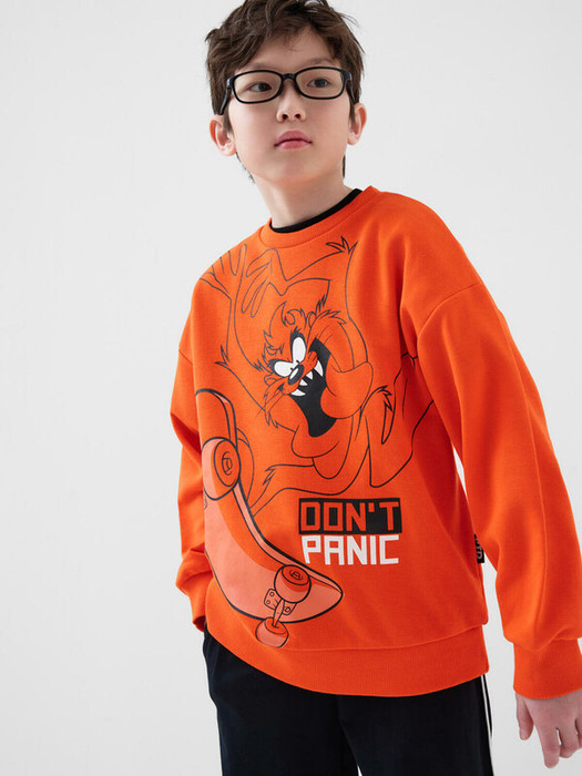 Оверсайз свитшот для мальчика подростка. Модель с круглым вырезом, длинными рукавами и манжетами. Выполнена из футера без начеса. Пояс и манжеты выполнены из эластичного риба, что обеспечивает хорошую посадку. Яркий принт с любимыми героями мультфильма Луни Тюнз.